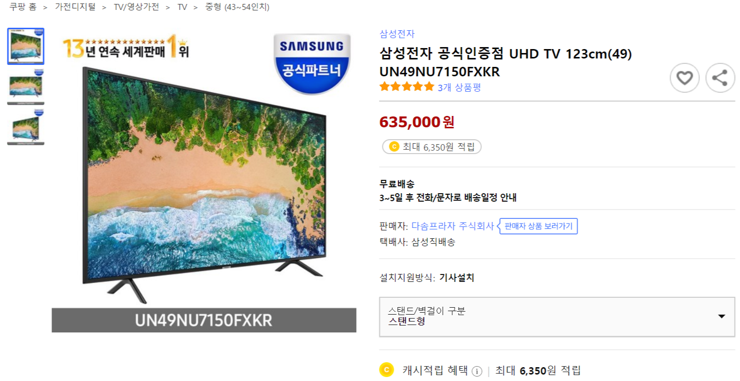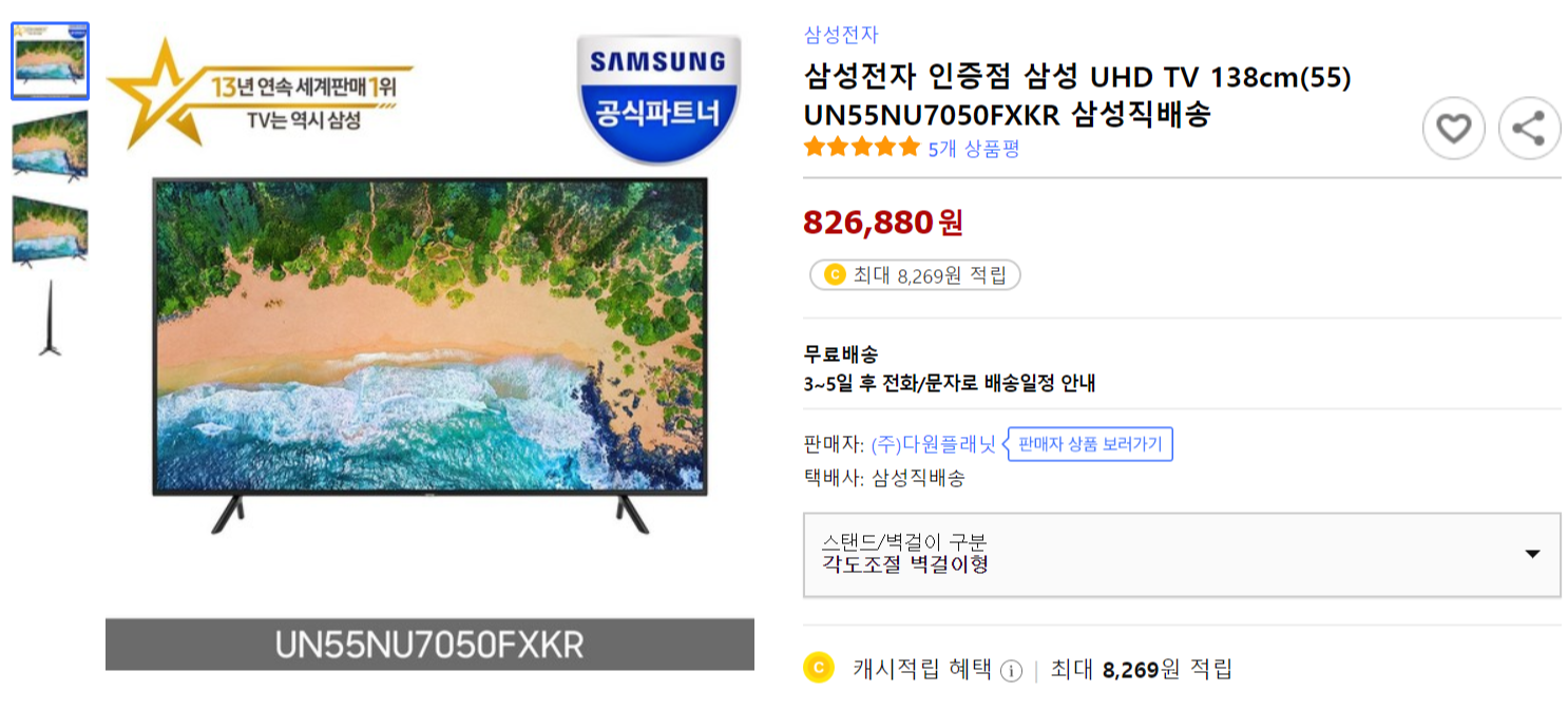 55인치 삼성 TV: https://coupa.ng/blPcPm
