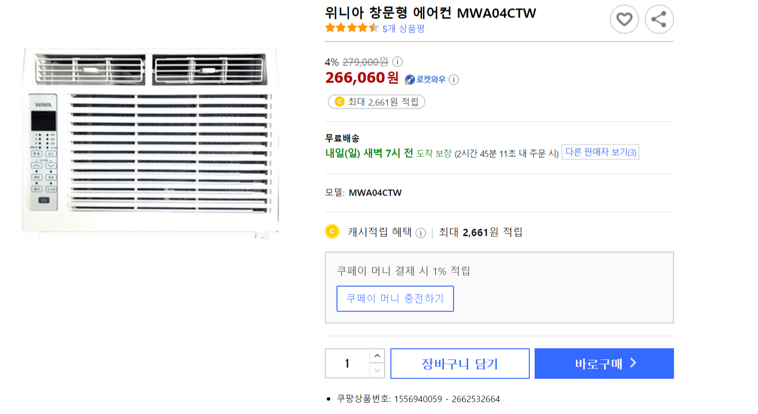 첫 번째로 소계 할 상품은 위니아의 창문형 에어컨입니다.