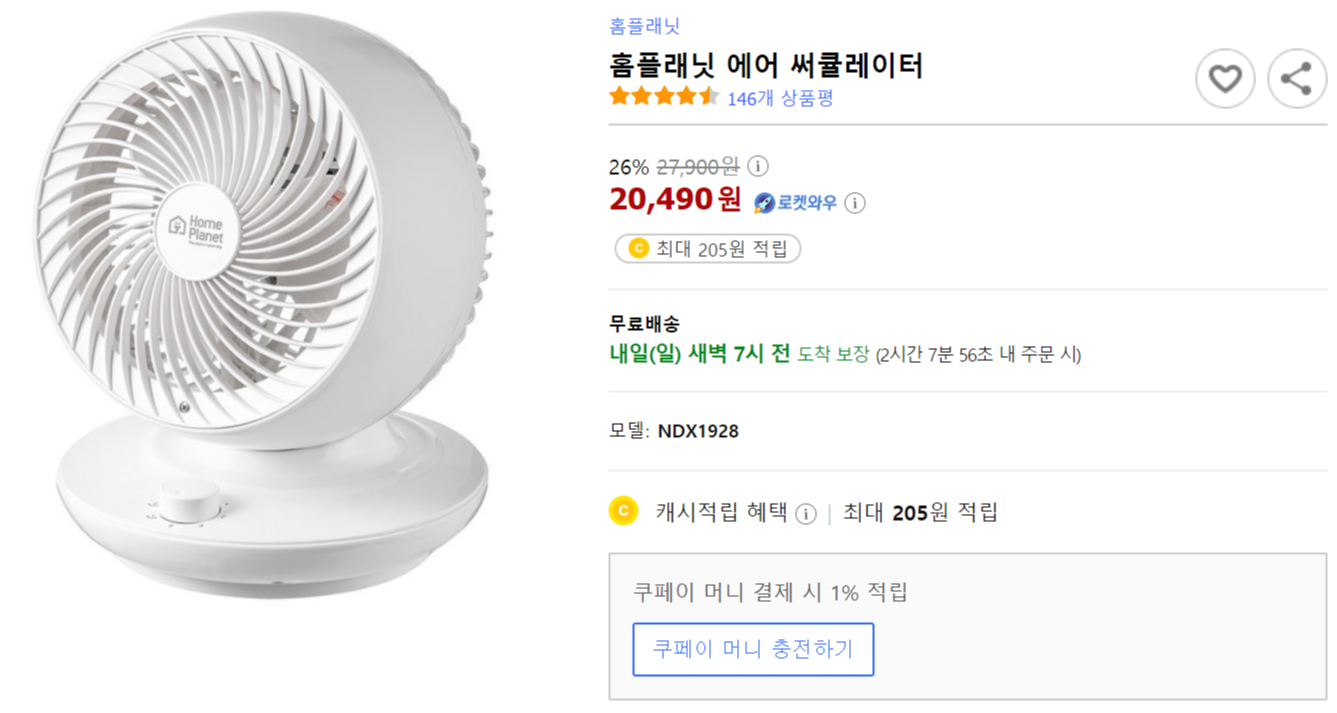 2만원에서 5만원 사이의 가격대로 구성되어 있는데요, 이 중 가성비 제품인 '홈플래닛 에어 서큘레이터'를 추천합니다.
